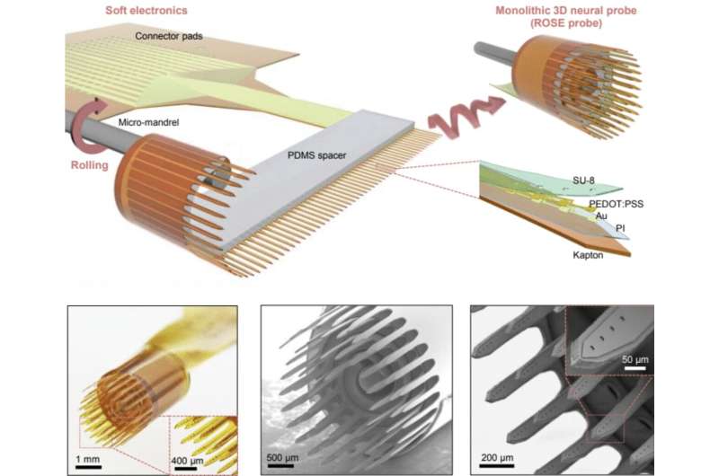Rolling soft electronics yields 3D brain probes for precise neuron mapping