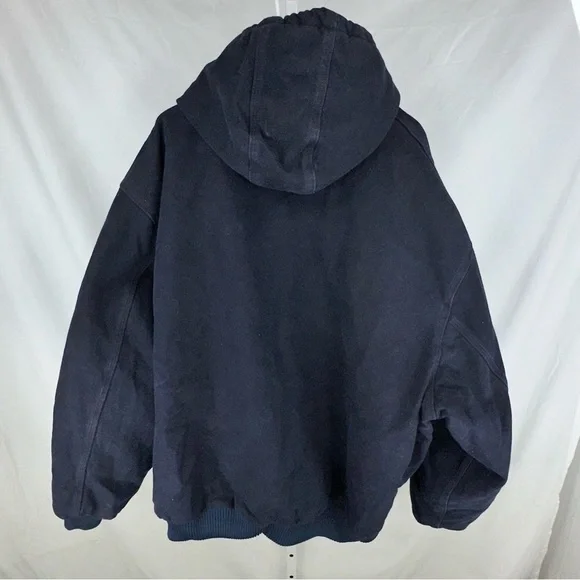 Preowned but in good condition!M399 on e and pmThis Carhartt Men's J130 MDT Blue Jacket is a must-have for a casual occasion. It is made of cotton and has a solid pattern. The jacket/coat length is short and it has a zip closure. The jacket has a blue color and the chest size is 69 inches. The lining material is polyester and the insulation material is also polyester. This jacket is perfect for fall and has a hooded feature. It is a regular fit and comes in size 4XL. The jacket has a classic theme and the brand is Carhartt. It is a basic jacket and is not vintage. It is not personalized and comes in a regular size type. The department is men's clothing and the style is a jacket. The jacket is not handmade and is made in Mexico.
