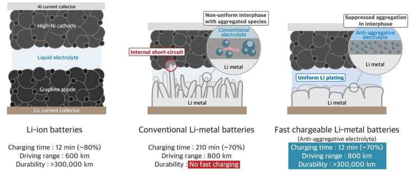 Lithium-metal batteries can charge in 12 minutes for an 800 km drive