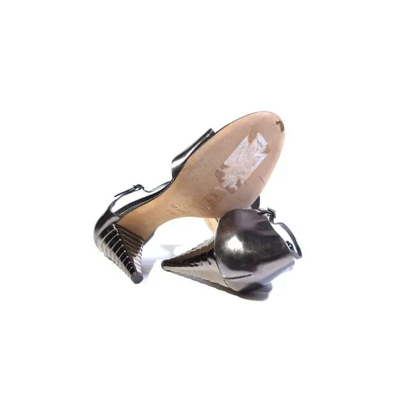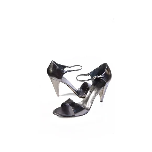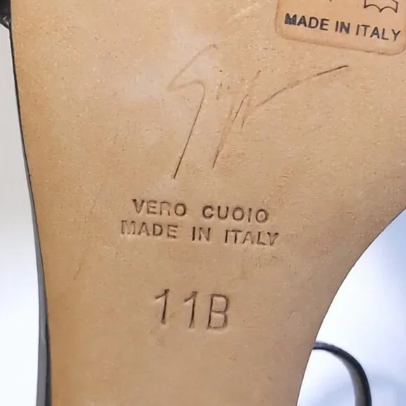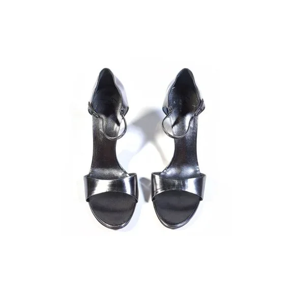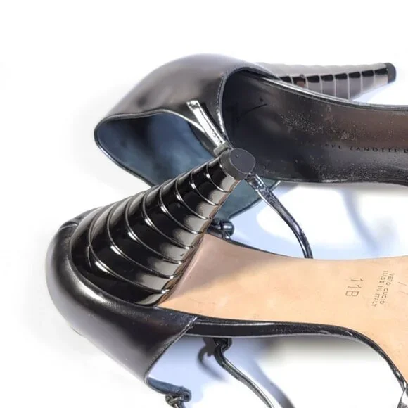 Giuseppe Zanotti Sandals Womens Size 11'Taz' 90 Mirror AntraciteoJust worn 1 time.Made in Italy.From Guiseppe ZanottioThe upper is Mirror Leather.Very mild use.Clean.oI happily took all the photos of the actual sandals for your review. oThe heel bottoms are much like new.oFrom a positive environment.Non-smoking.